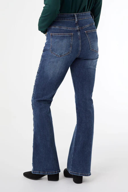 Coco and Carmen EverStretch Flare with Side Rouching Dark Denim
