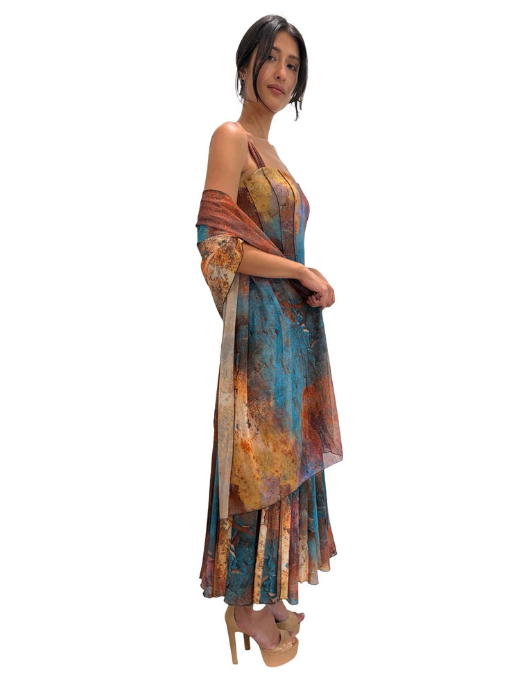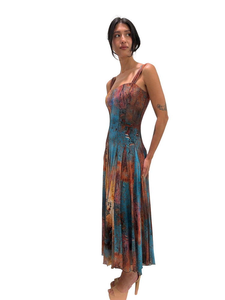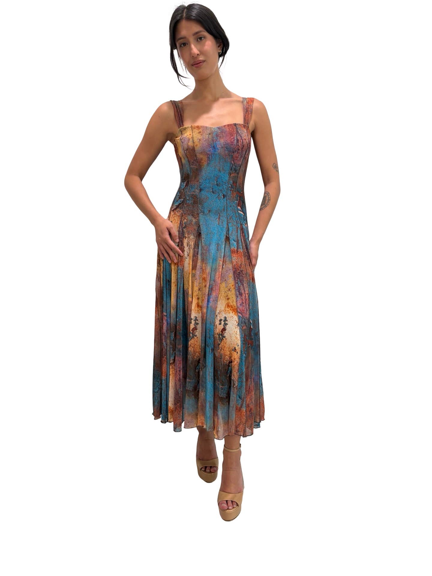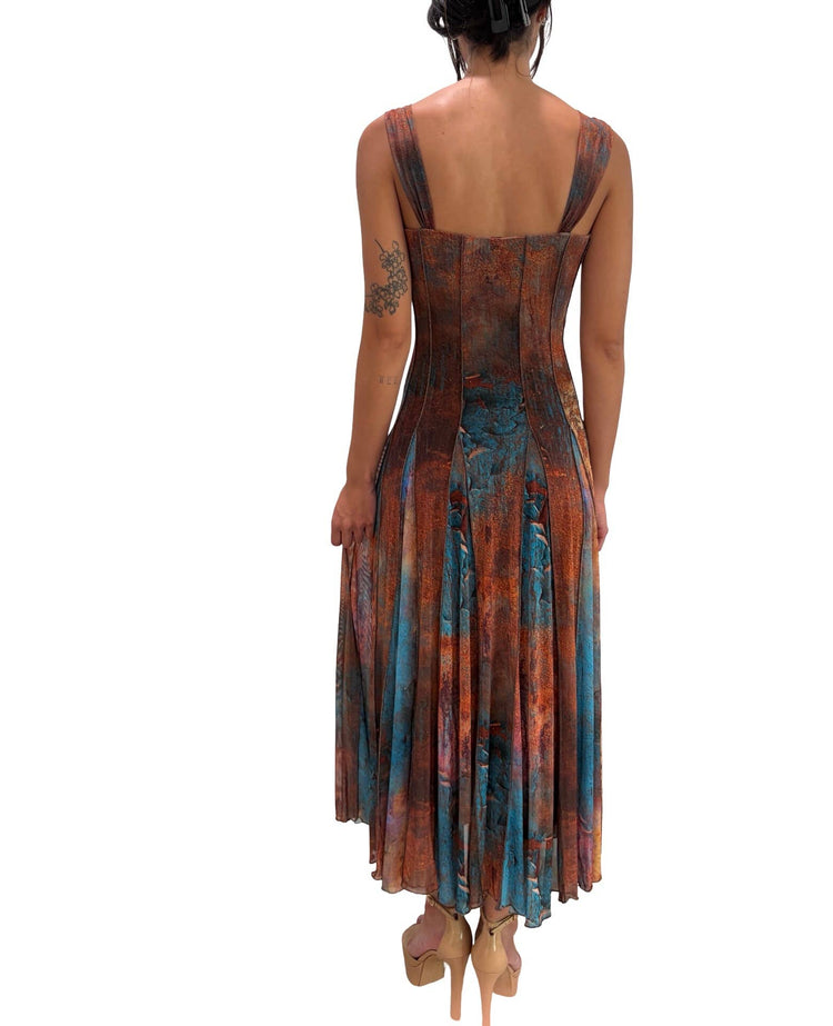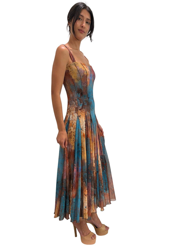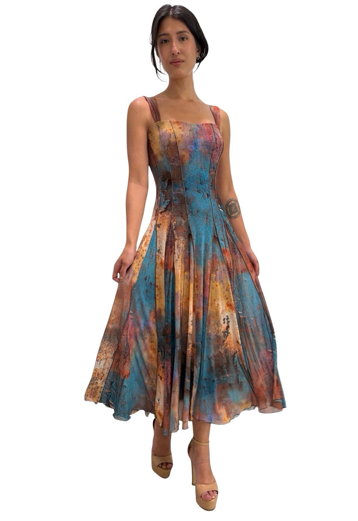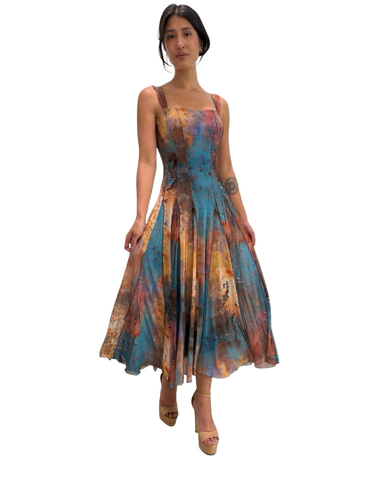 Elana Kattan MONET Sleeveless Tea Length Fit N Flare Paneled Dress
