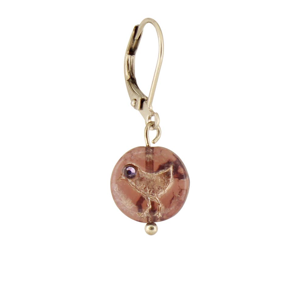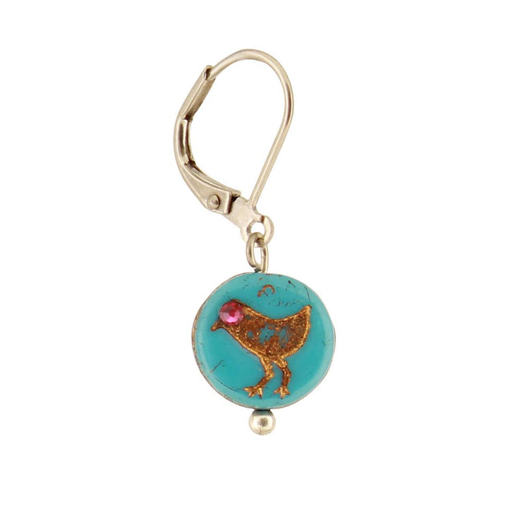 Artisan bird bead with Austrian crystal. Earrings and coordinating necklaces are made in America.