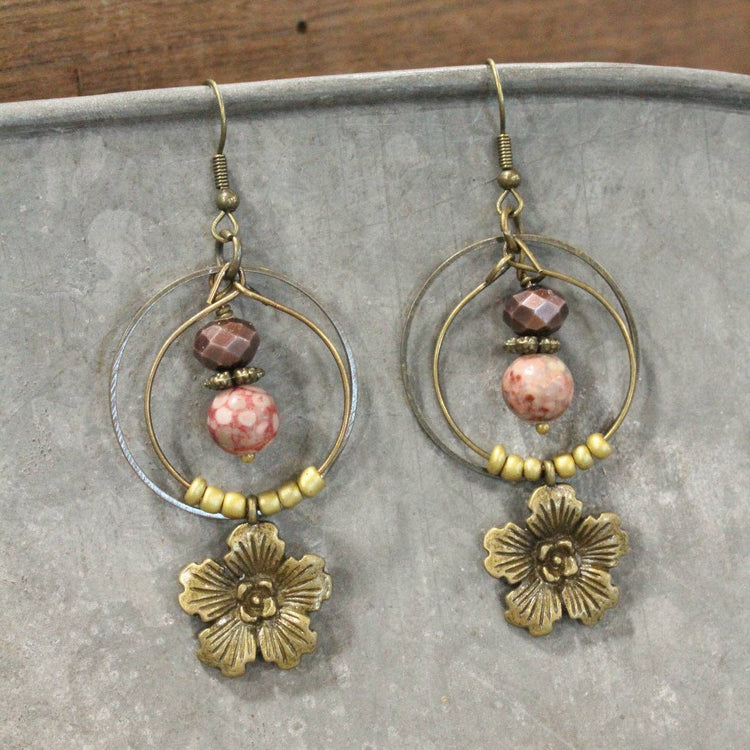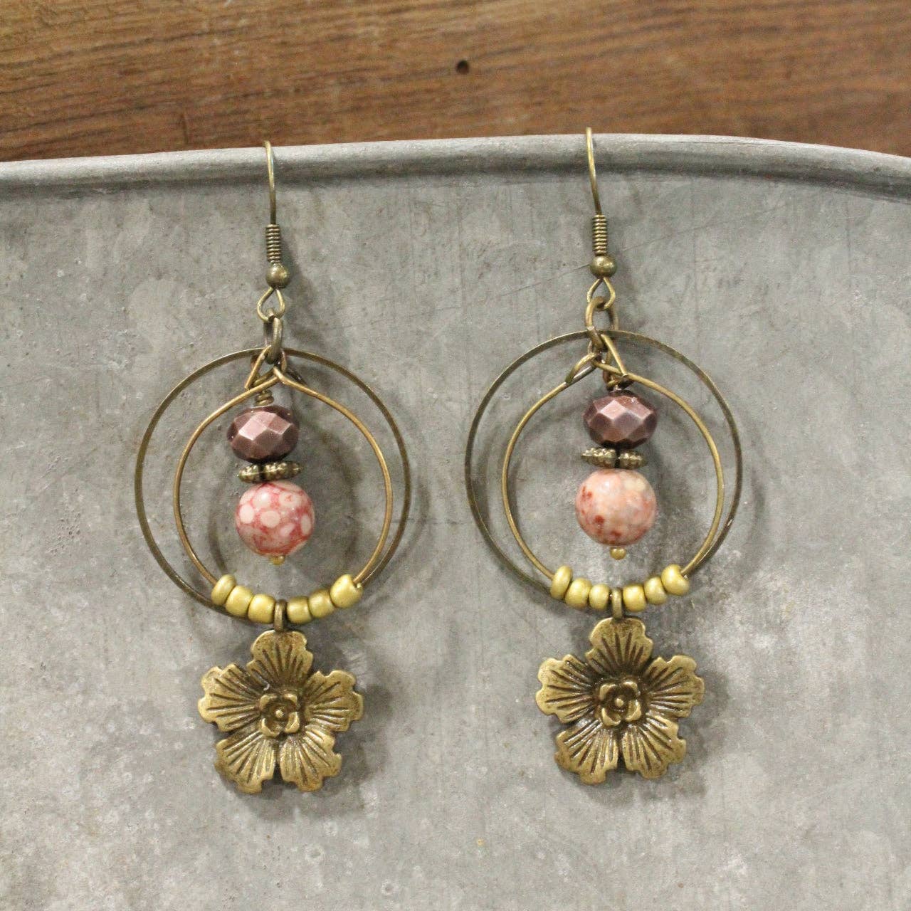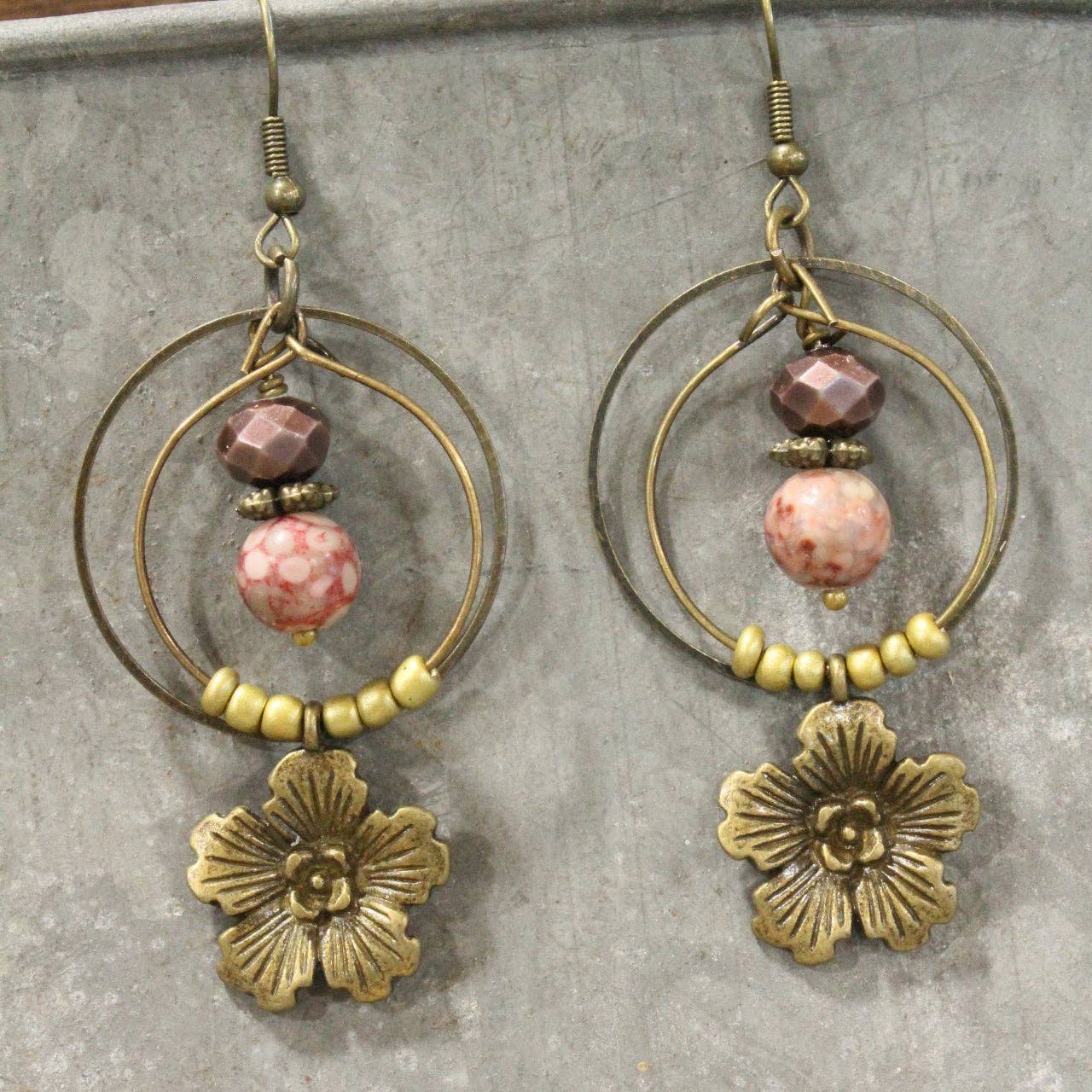 The Primitive Peddler, Inc. Mauve & Bronze Flowers Dangle Earrings