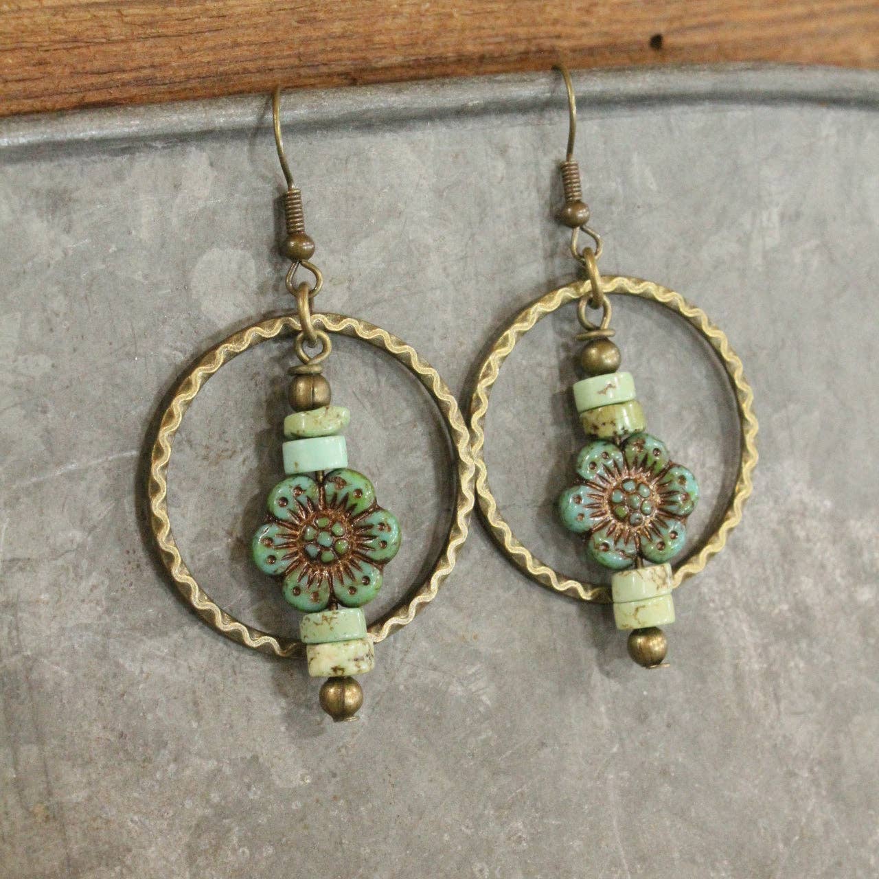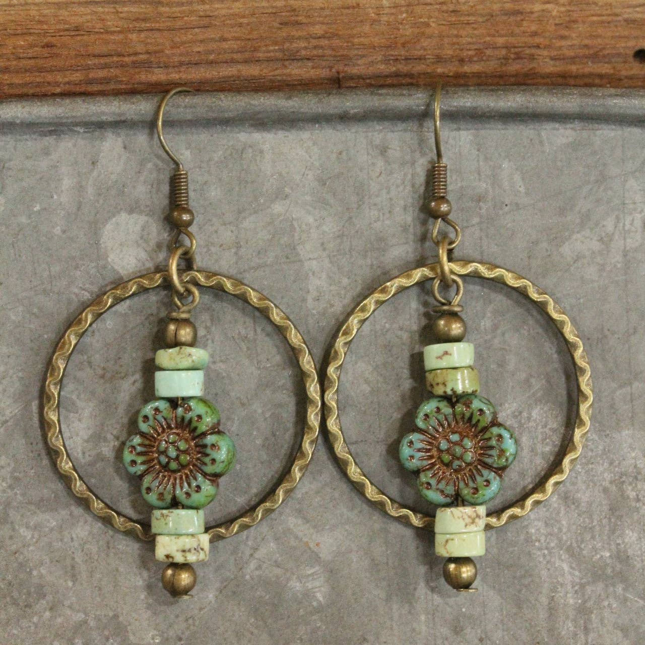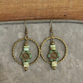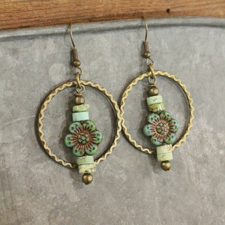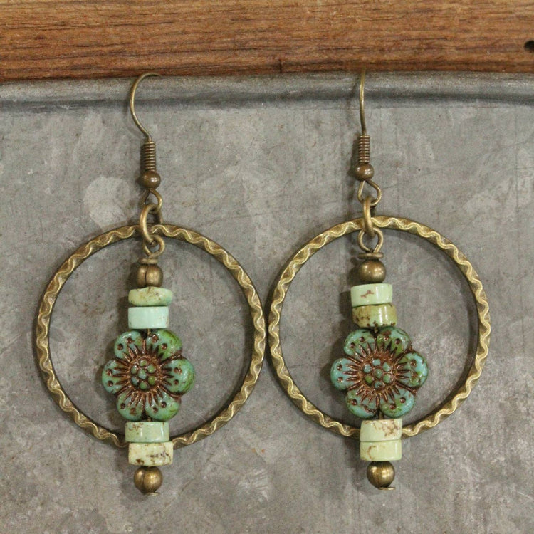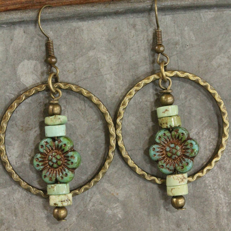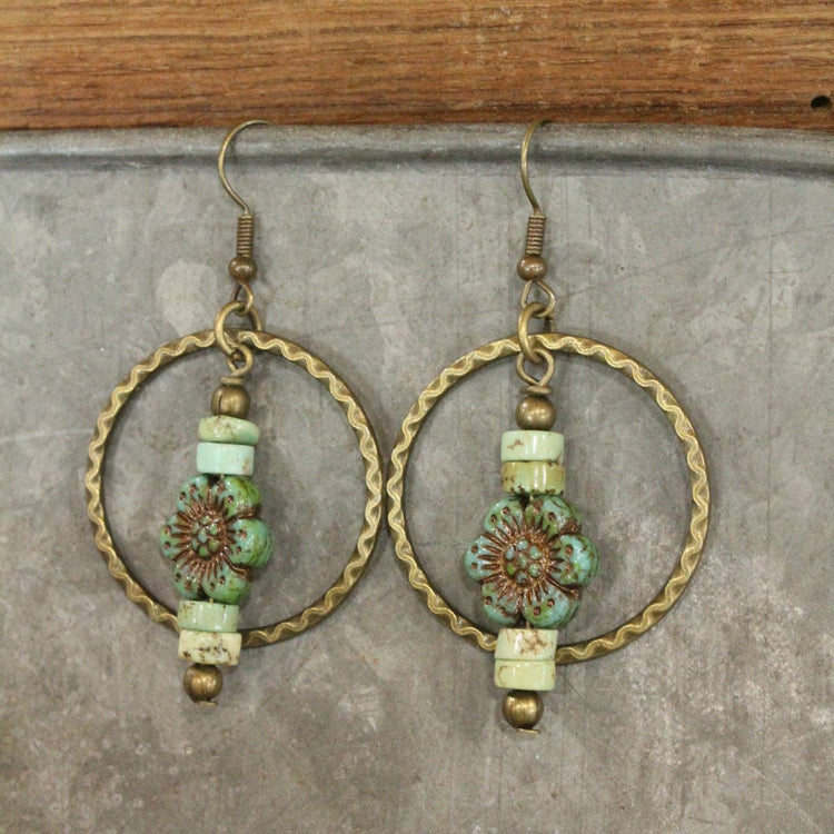 The Primitive Peddler, Inc. Czech Glass Flower Bronze Dangle Earrings