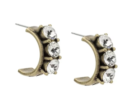 French Kande Brass TRIPLE AUSTRIAN CRYSTAL HUGGIE Earrings
