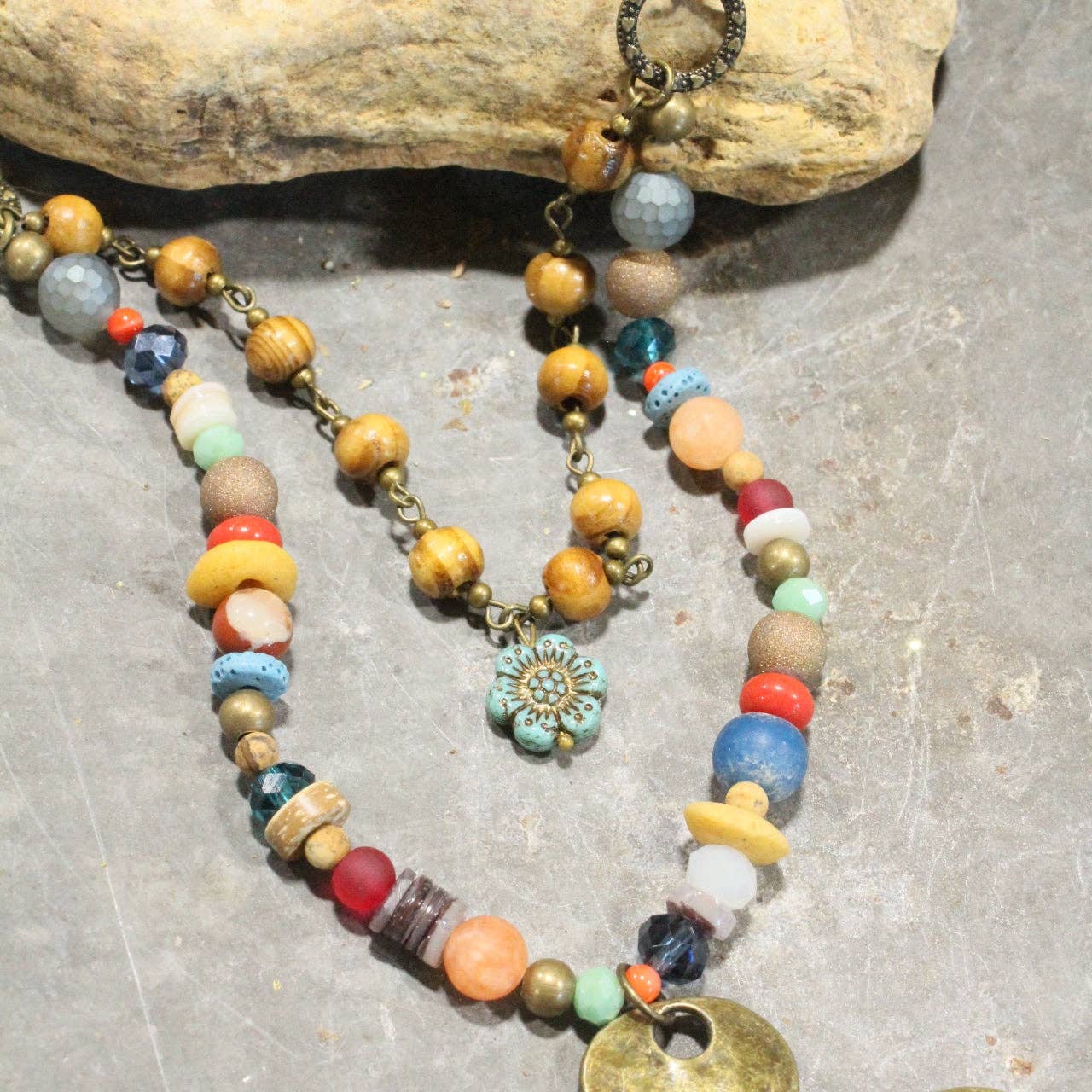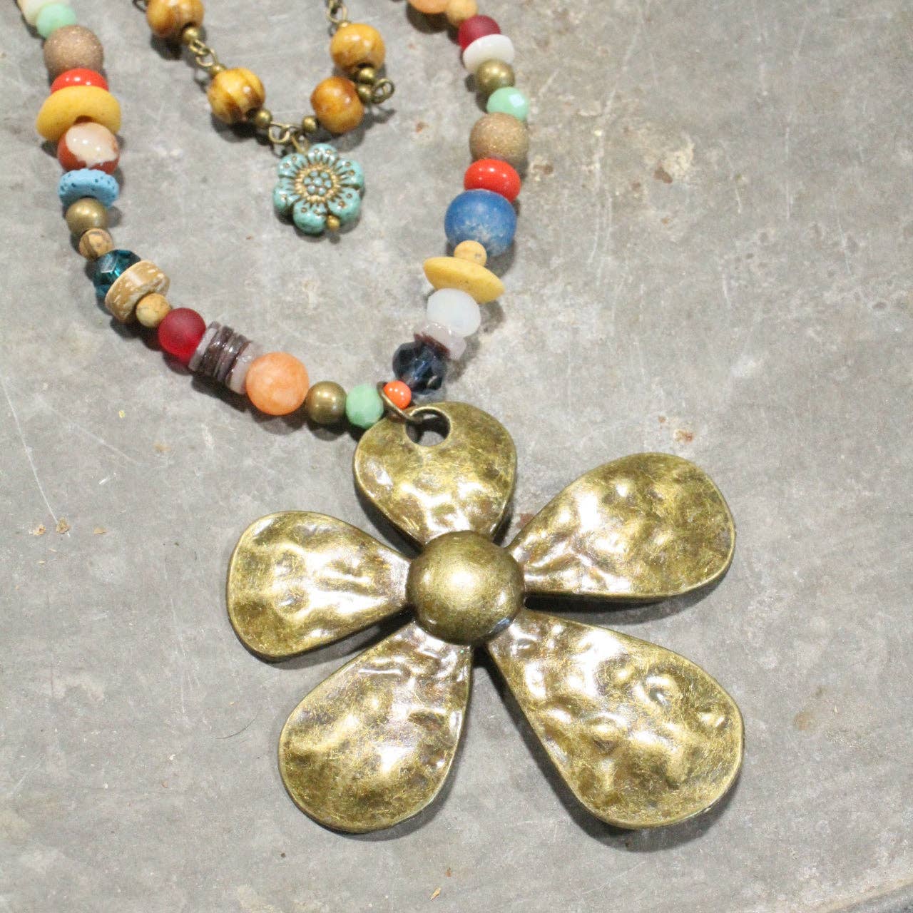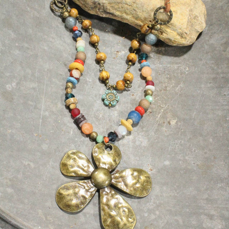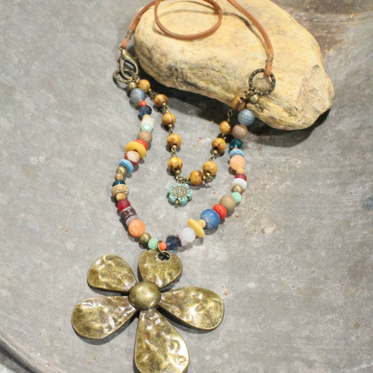 The Primitive Peddler, Inc. Fun In the Sun Flower Layered Leather Necklace