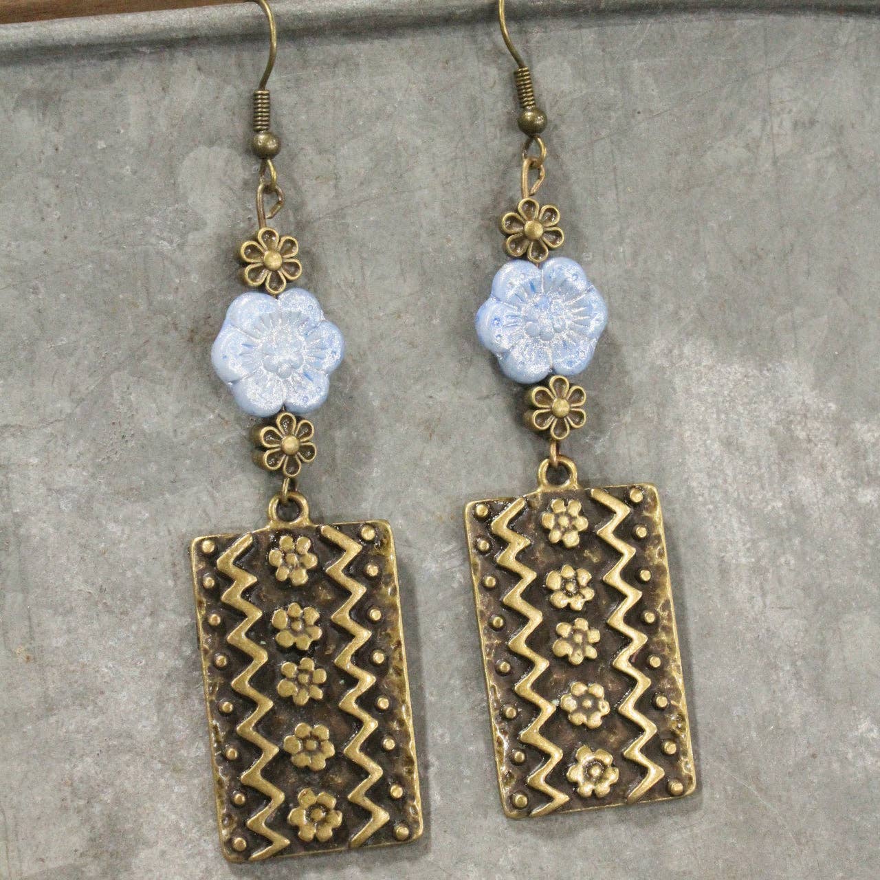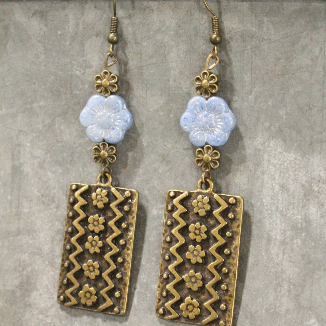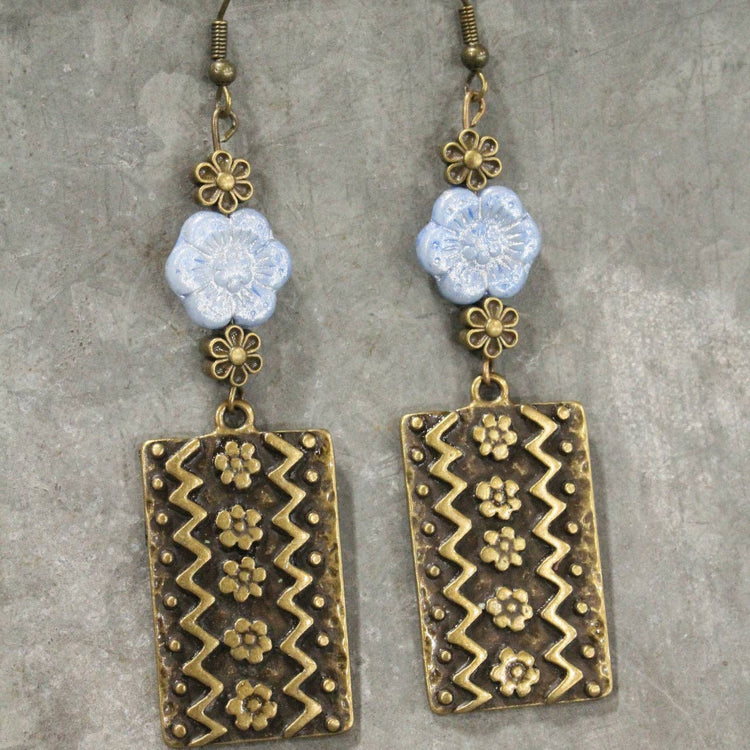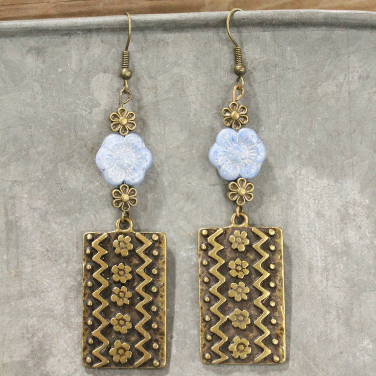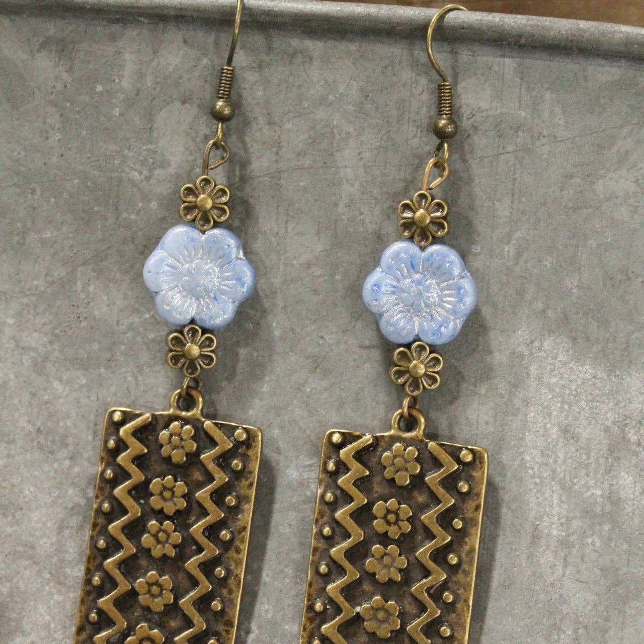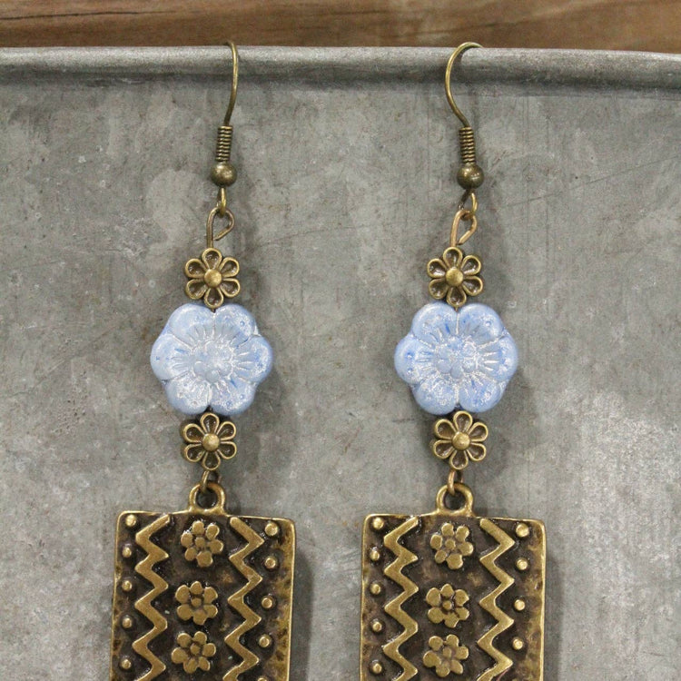 The Primitive Peddler, Inc. Garden Blooms Czech Periwinkle Charm Dangle Earrings