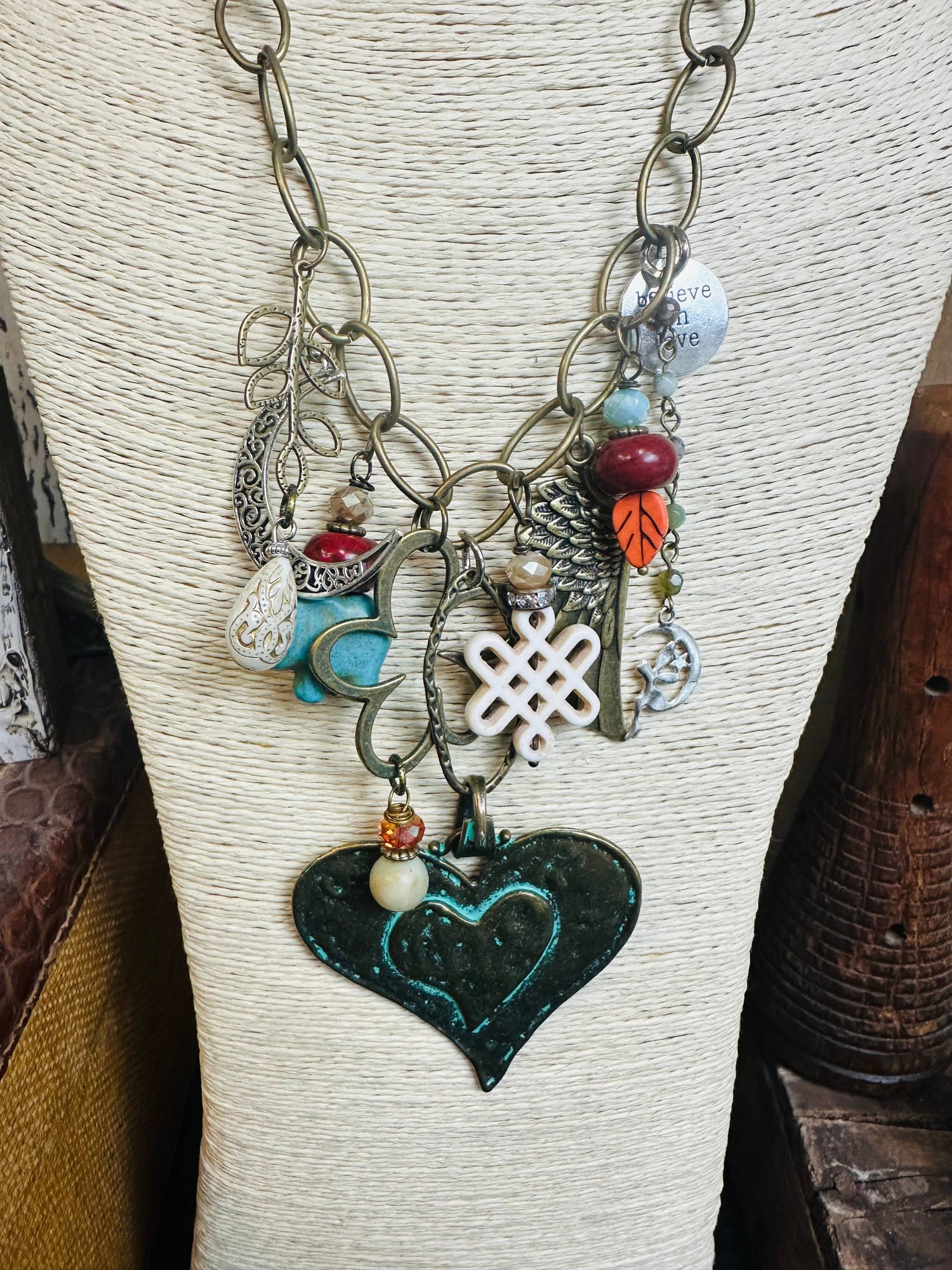 Scooples Jewelry Gypsy Junk Original Heart-Turquoise Necklace