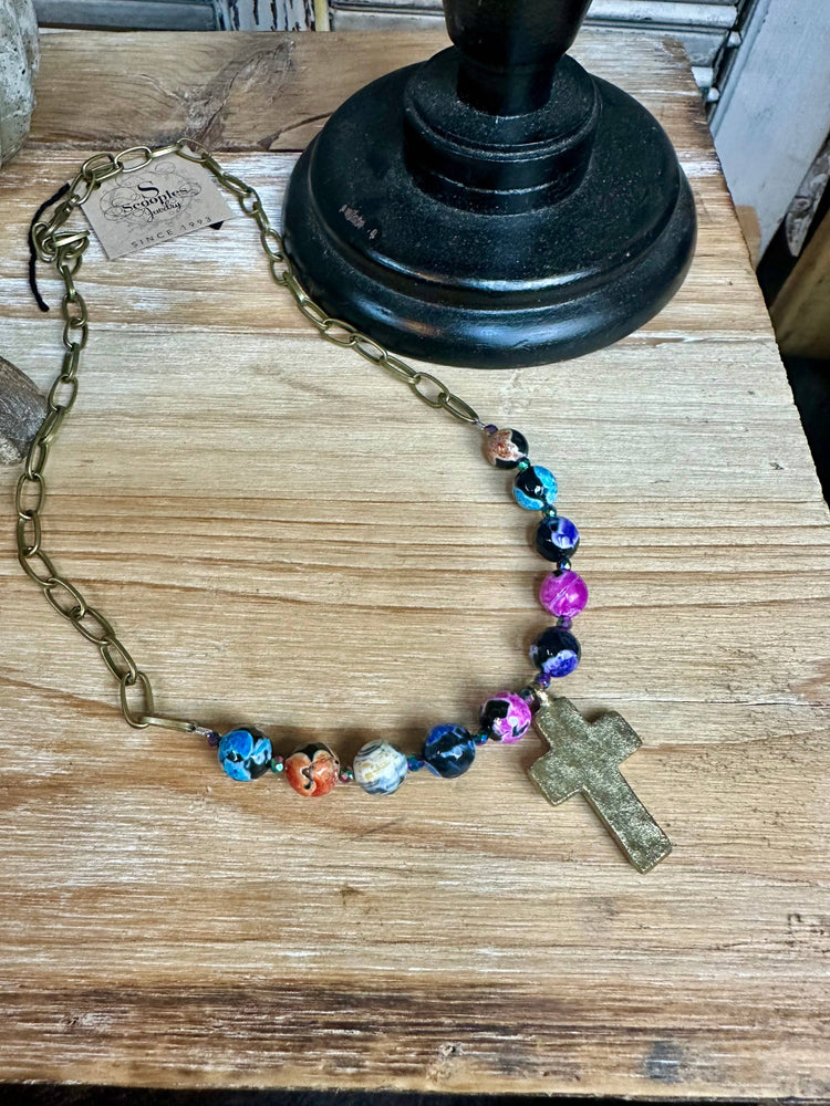 Scooples Jewelry Multi Agate Cross Necklace