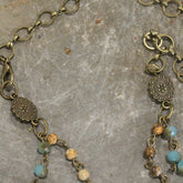 Our ONE-OF-A-KIND jewelry is handcrafted & created just for YOU. We carefully handpick our stones & findings to ensure that each collection allows you to elevate your wardrobe & express your unique style. Our designs are created with vintage czech beads, textured picasso beads, crystals, & natural stones. These natural stones include: amazonite, quartz, fossil, jasper, jade, howlite, hematite, lazuli, turquoise, & more. To top off these designs, each piece will be touched with a mixture of nickel, gunmetal, bronze, silver, & copper metals.