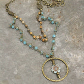 * 20", 22" layered lengths with a 1.5" pendant drop. Has a claw clasp.