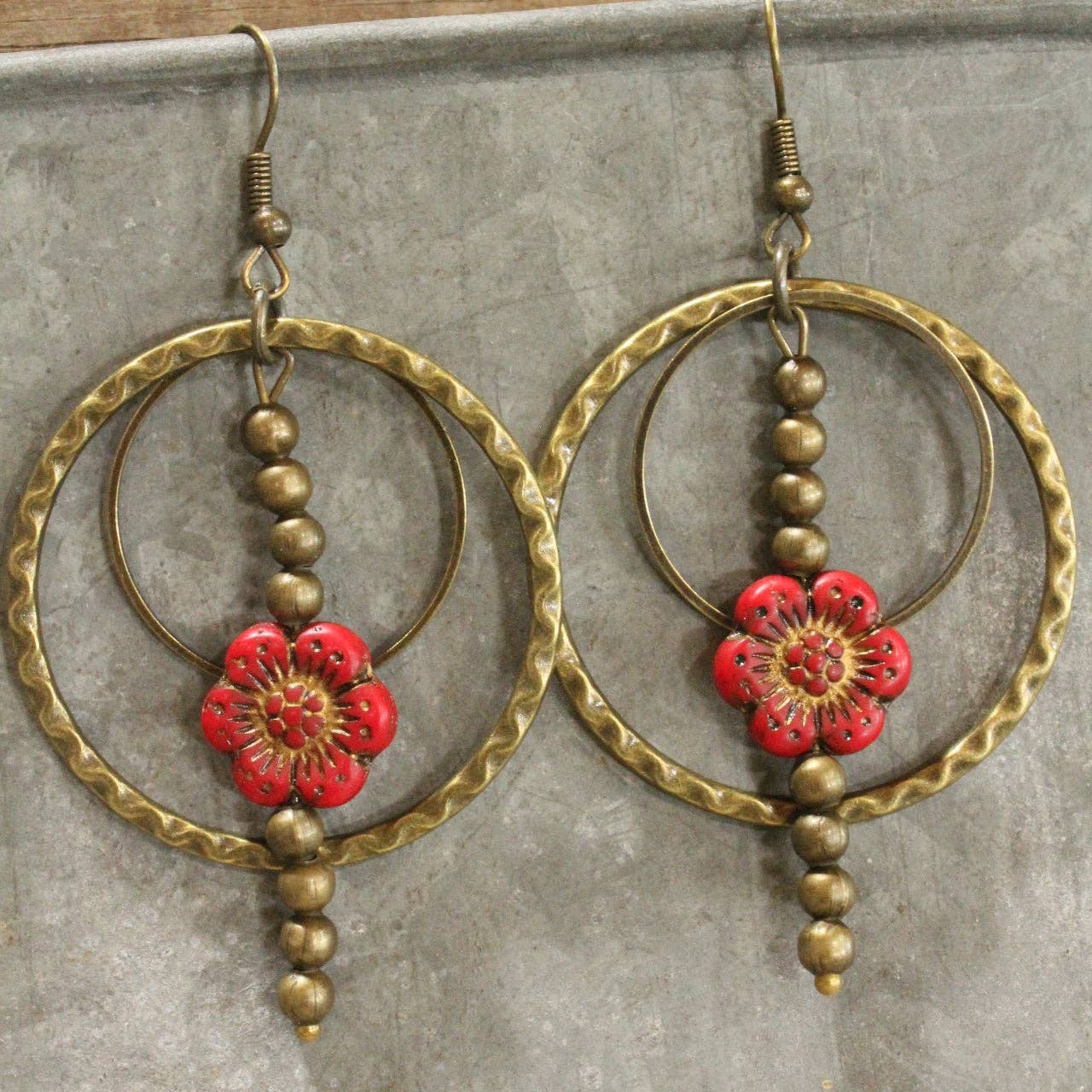 The Primitive Peddler, Inc. Picasso Wildflower Red Dangle Earrings