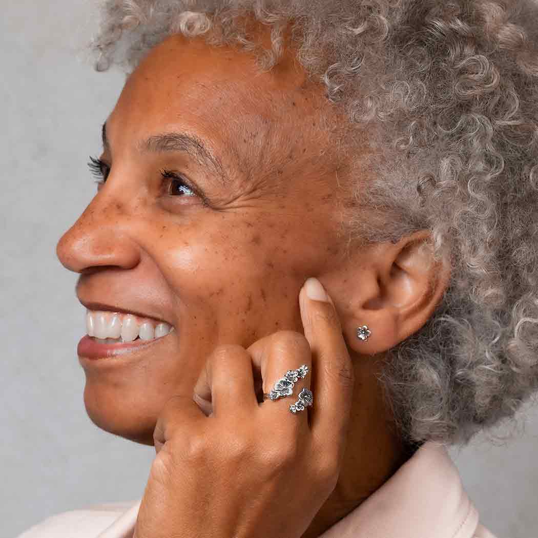 Nina Designs Sterling Silver or Bronze Adjustable Cherry Blossoms Ring