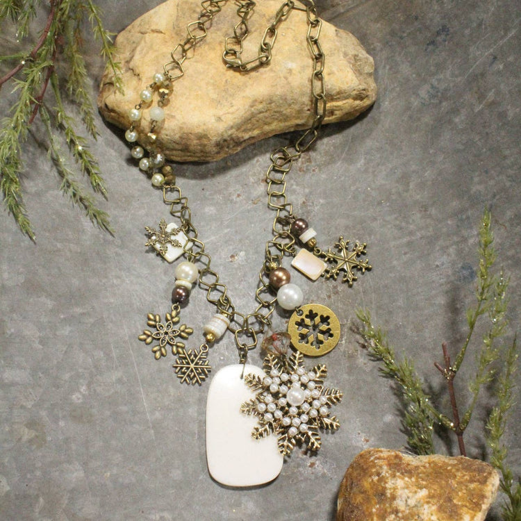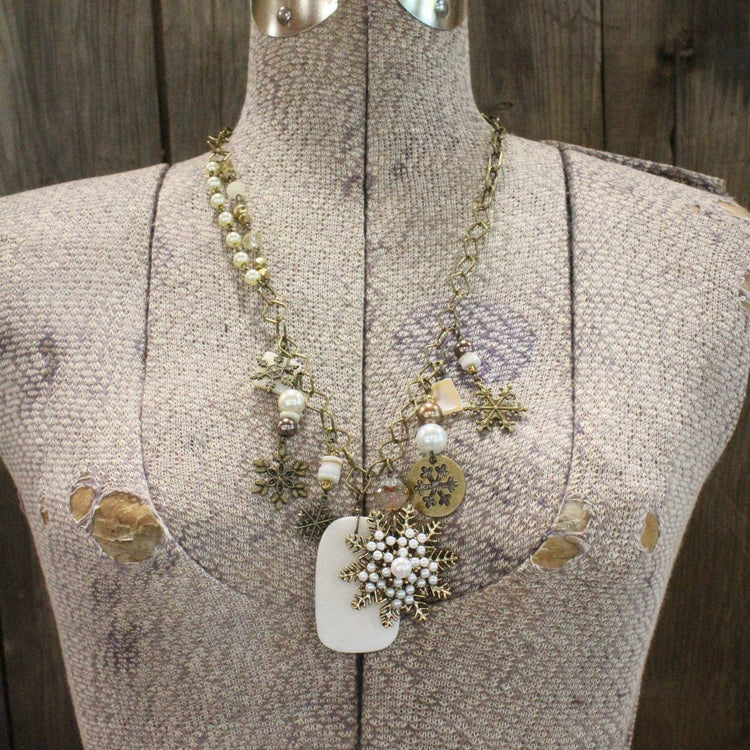 The Primitive Peddler, Inc. Vintage Snowflake Charm'd Winter Necklace