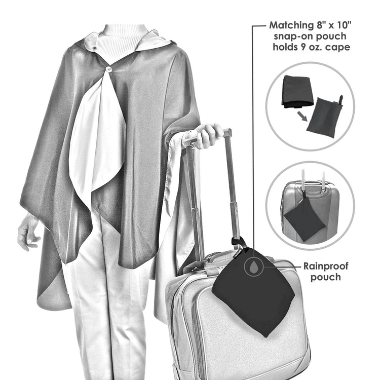 More than a lightweight women’s rain poncho, the packable, rainproof & windproof travel cape offers effortless comfort and timeless style. Enjoy the silky-soft, luxurious, and supple fabric as you wrap yourself in this fashionable travel cape that makes it clear you’re going places. Ideal for transitional weather, it may be worn as a cape alone, or wear it over a jacket or coat in cooler or rainy weather – the ultra-versatile RainCaper works drizzle or downpour, rain or shine.