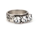French Kande Triple Austrian Crystal Ring Silver or Brass