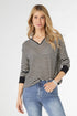 Coco and Carmen Aruni V-Neck Striped Knit Top with Hood