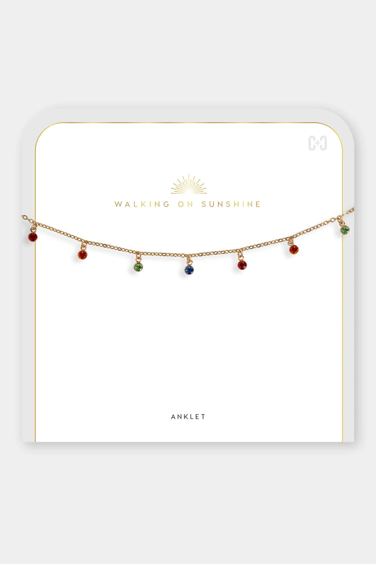 Add a touch of charm to your feet with our Color Stone Dangle Anklet. This anklet is the perfect jewelry piece to elevate your style and make a statement. Whether you're dressing up or keeping it casual, this anklet is a versatile accessory that will surely turn heads.