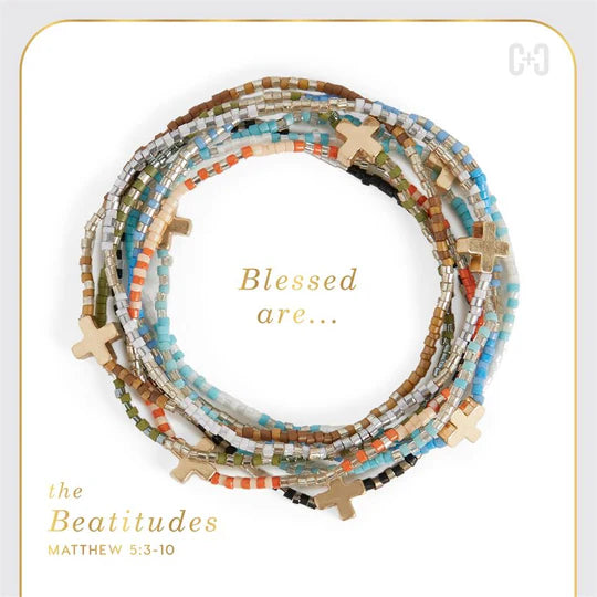 Beautifully carded and ready to gift! Style with meaning -- the eight bracelet colors represent the 8 beatitude reflections.