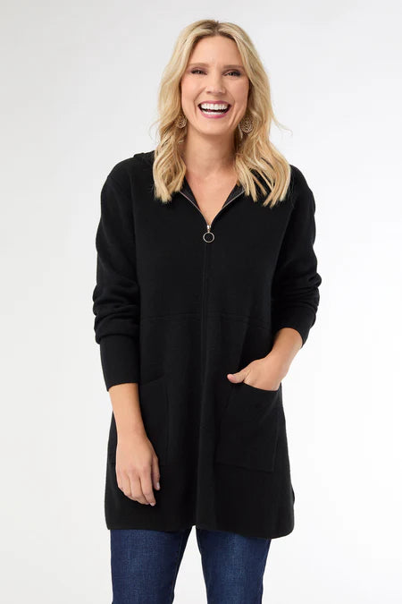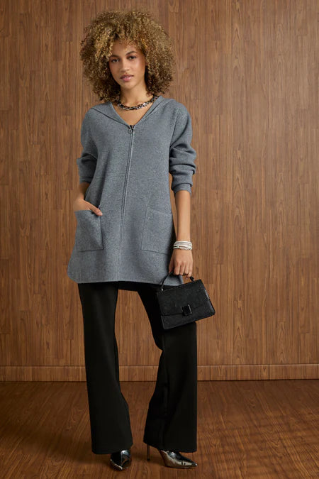 Coco & Carmen Heavenly Luxe Zip Front Hooded Cardigan with Pockets