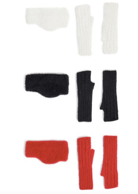 Embrace the colder days with our irresistibly fuzzy headband warmer and fingerless gloves. A must-have accessory for any winter outfit.
