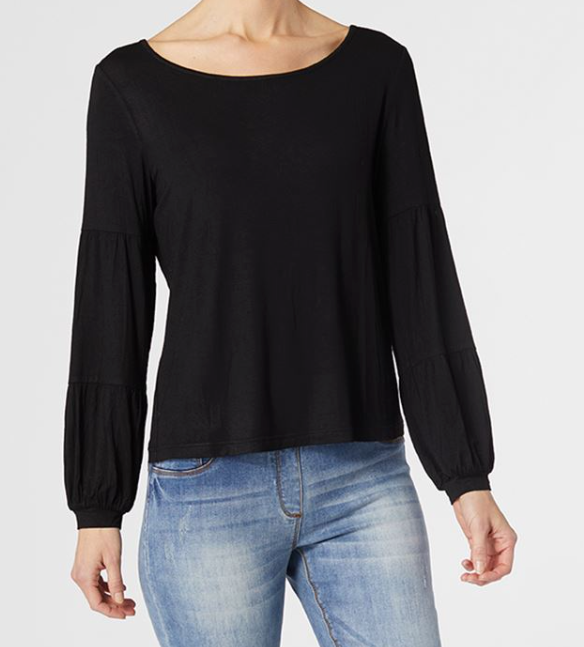 This essential top features a relaxed fit, scoop neckline, tiered puff sleeves, and a super soft fabric with a gentle stretch.