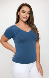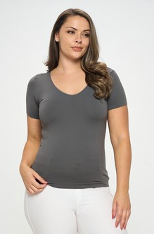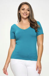 Yelete Reversible Compression V-Neck or Scoop Neck Short Sleeve Top One Size