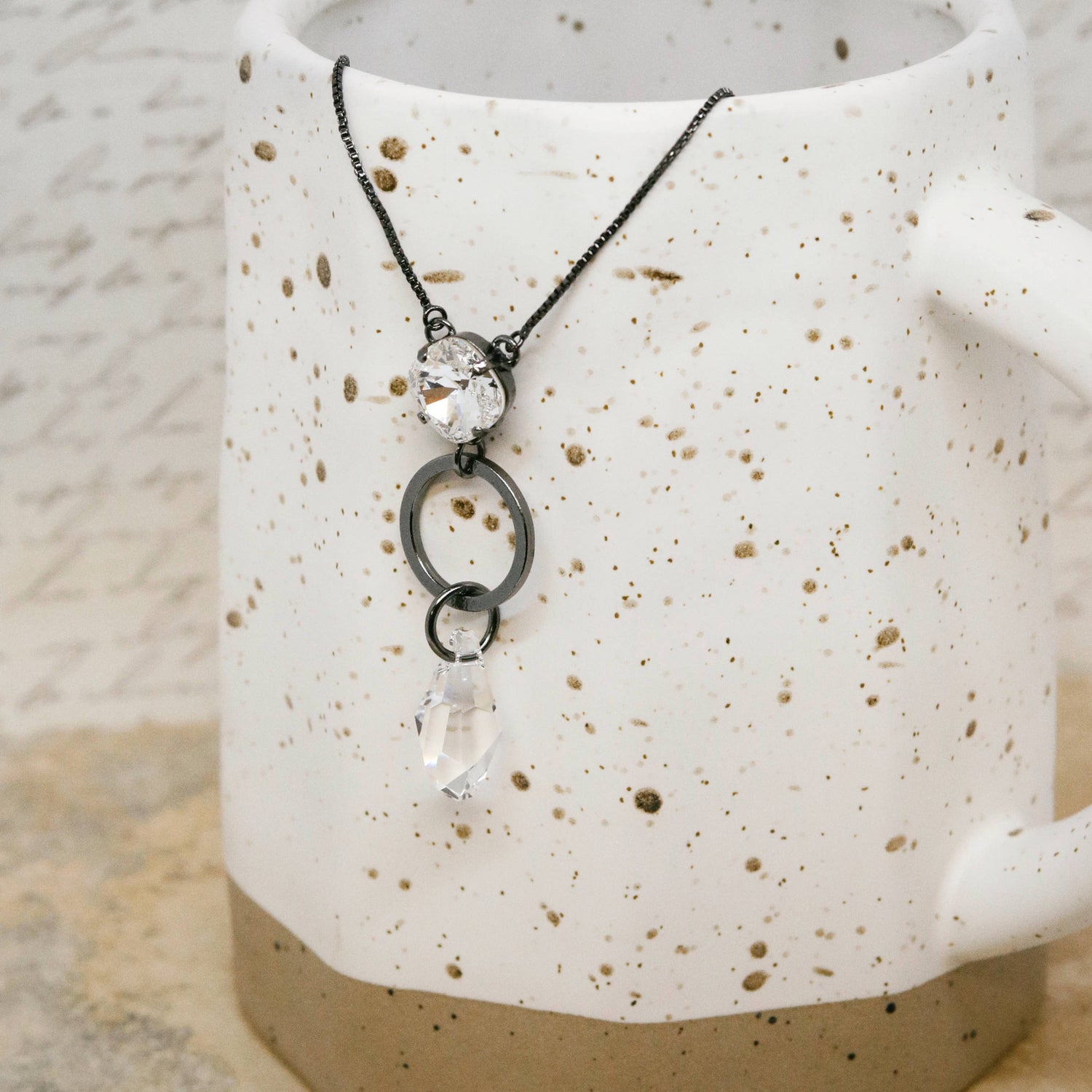 The great feature of this necklace is that it is adjustable from short to long or long to short. 12mm Crystal Elements.