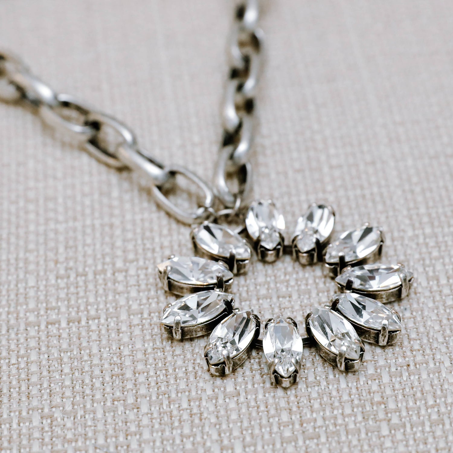 18 inch chain with adjustable extension chain. This piece can be worn by itself or layered with other pieces. -Oxidized silver finish over brass base -Lobster clasp closure.