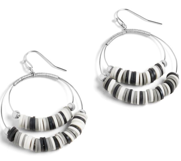 Beautiful hypoallergenic fashion earrings with Heishi discs running through a hoop, dangle earring.