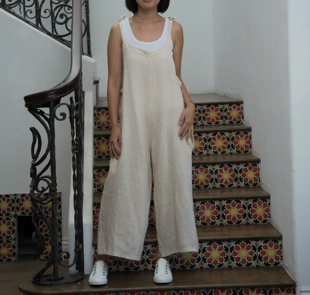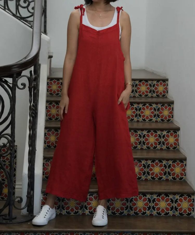 Merci Marie Linen Tie Shoulder Jumper