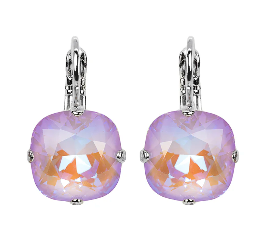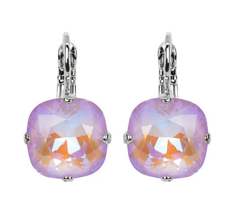 • Rounded square cushion cut leverback earrings - 12mm unique, high-quality Crystal.