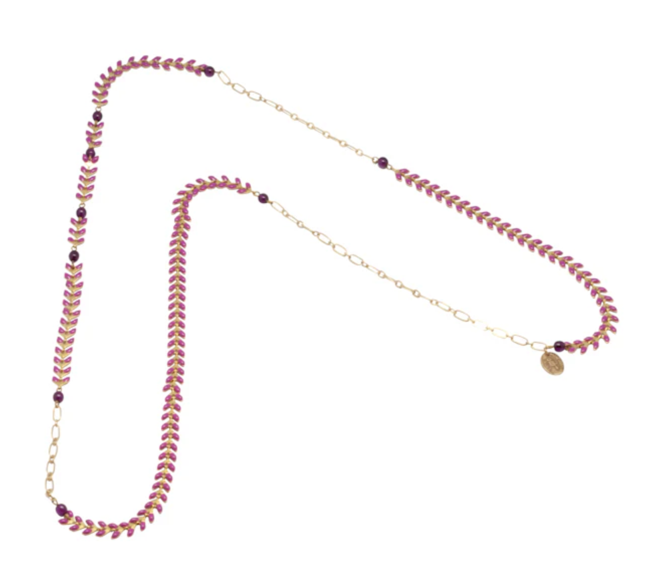 Nadine Delphine Enameled Brass Leaf Chain and Glass Beads Necklace