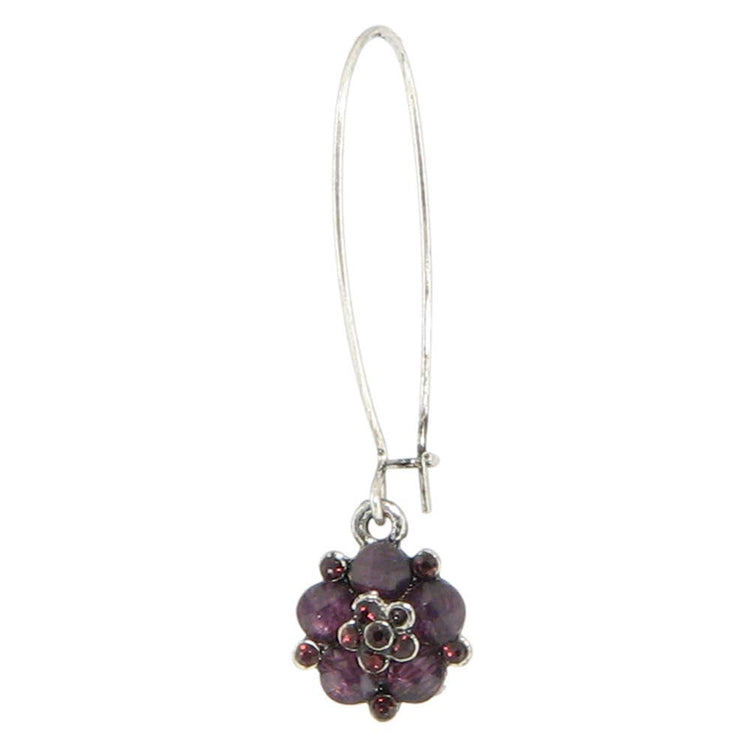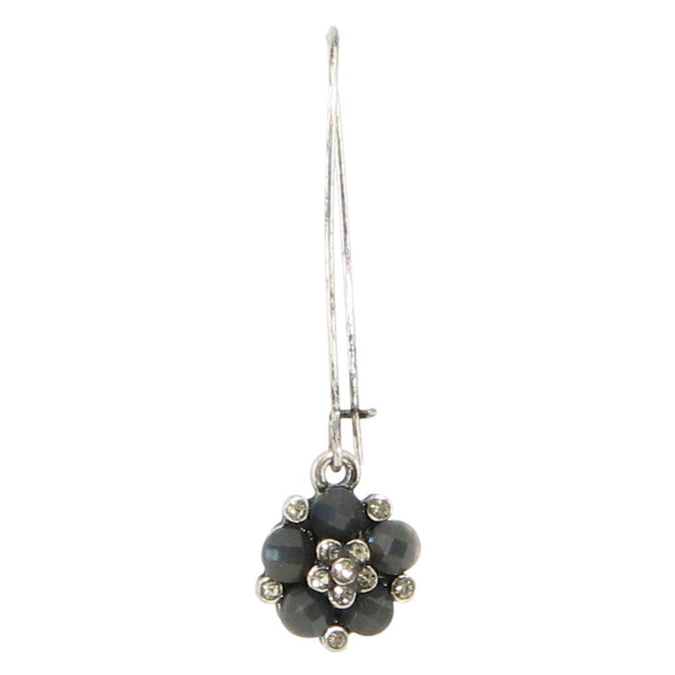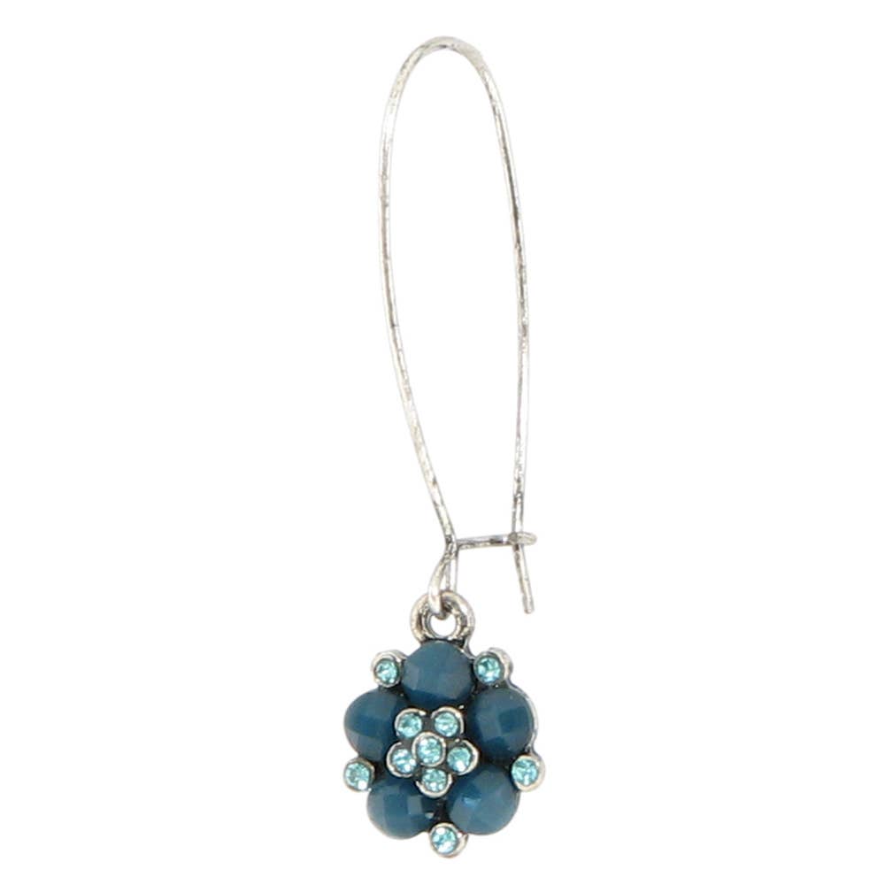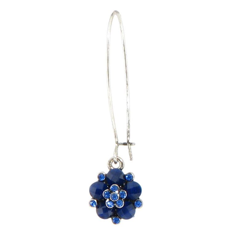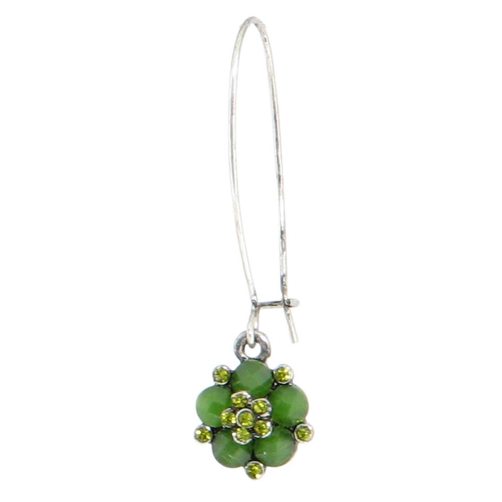 Silver plated flower setting with a combination of opaque and translucent Austrian crystals, on a long kidney wire.
