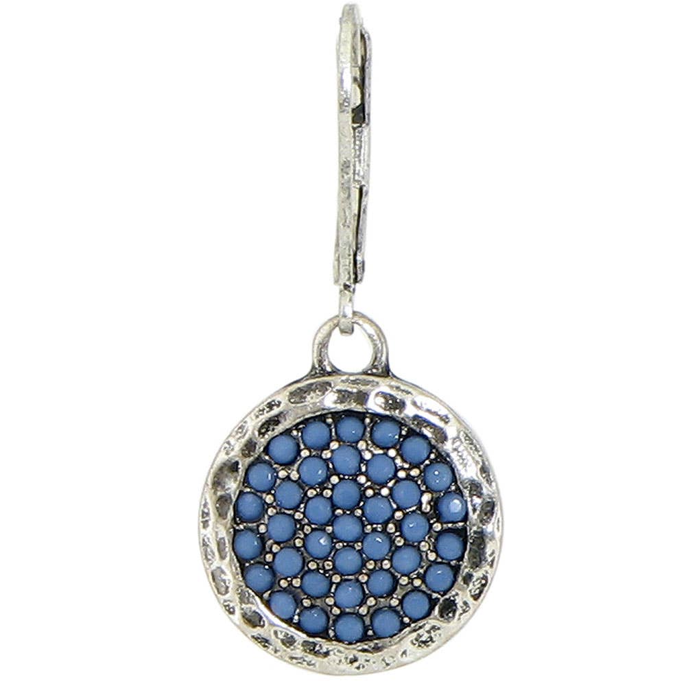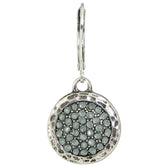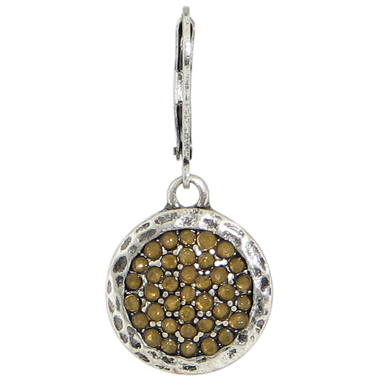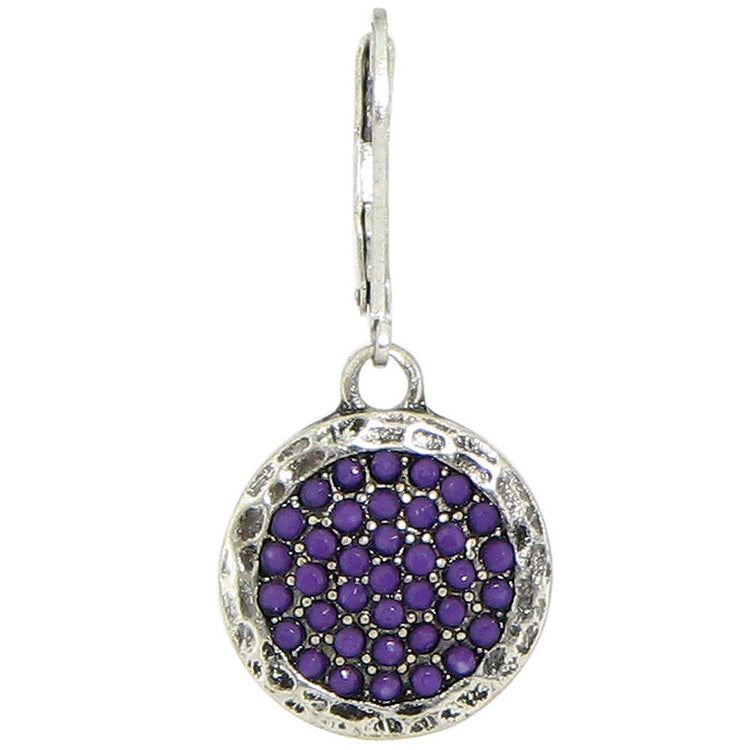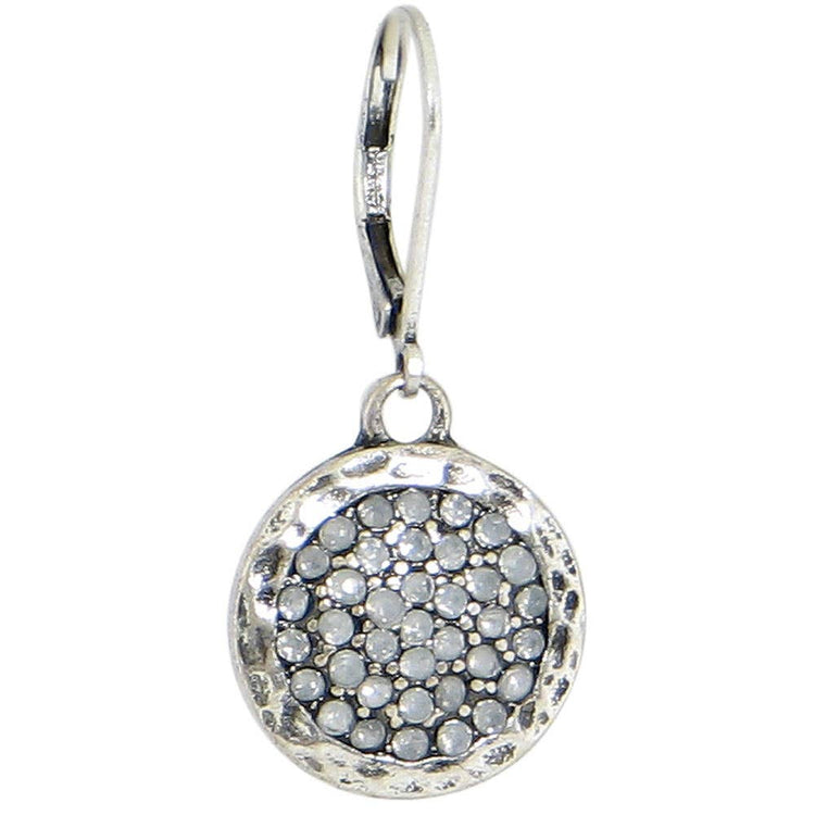 All of the crystal without the sparkle, opaque pave earring in an organic round setting. Dangling from a hinged ear wire, they are available in six color ways.