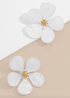 These earrings are so pretty! The flower is approximately 1.5" across. This glistening resin stud earring is such a cheerful way to brighten up any outfit.